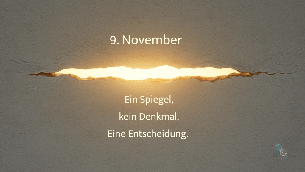 So steht der 9. November wie ein Spiegel, in den Deutschland immer wieder schaut. In ihm liegen Wunden und Wunder dicht nebeneinander. Ein Mahnruf und ein Versprechen zugleich: Wir sind fähig zu zerstören – und fähig zu heilen. Vielleicht ist dieser Tag kein Zufall.